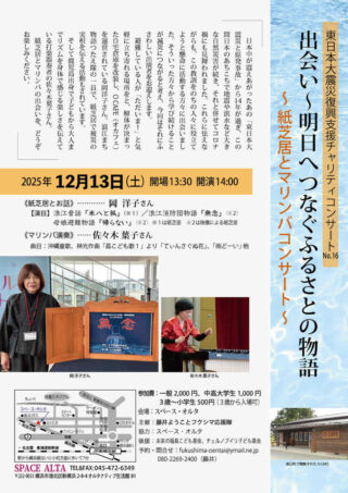 東日本大震災復興支援チャリティーコンサートNo.16 紙芝居とマリンバコンサート 12月13日 スペース・オルタ(神奈川県横浜市)